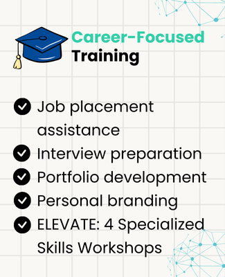 Complement your digital marketing expertise with our ELEVATE workshops – four intensive, hands-on weekly sessions designed to build essential complementary skills that will set you apart in the industry. Each workshop focuses on a high-demand skill area that enhances your digital marketing capabilities and expands your professional toolkit.